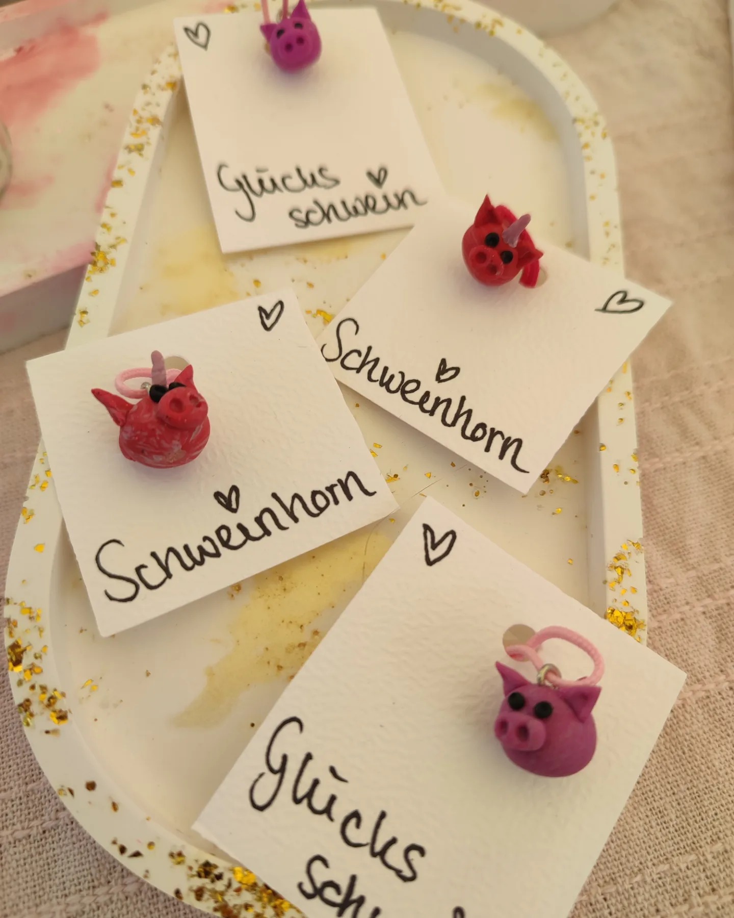 Meine kleinen Glücksschweine & Schweinhörner aus Fimo, handgefertigt.