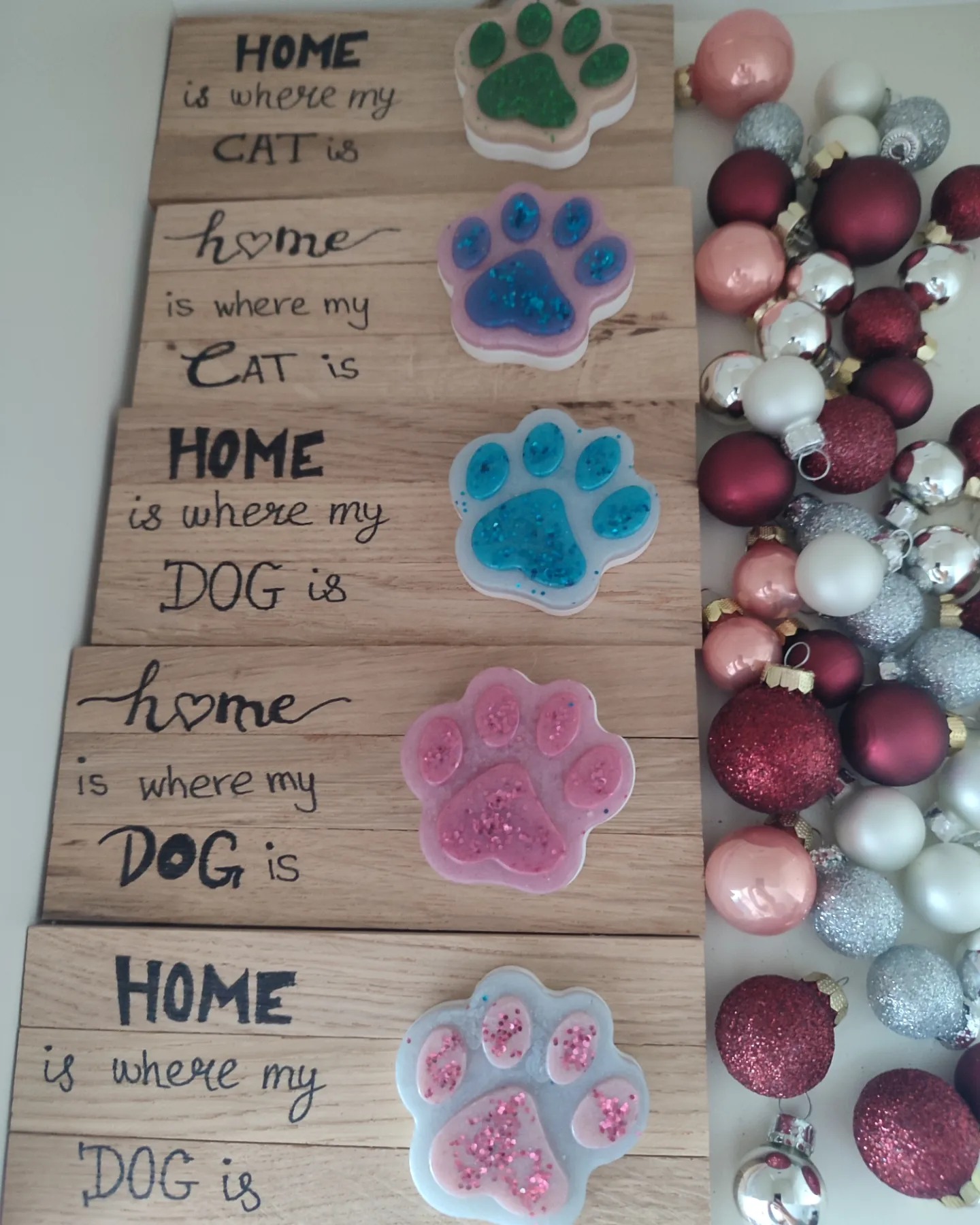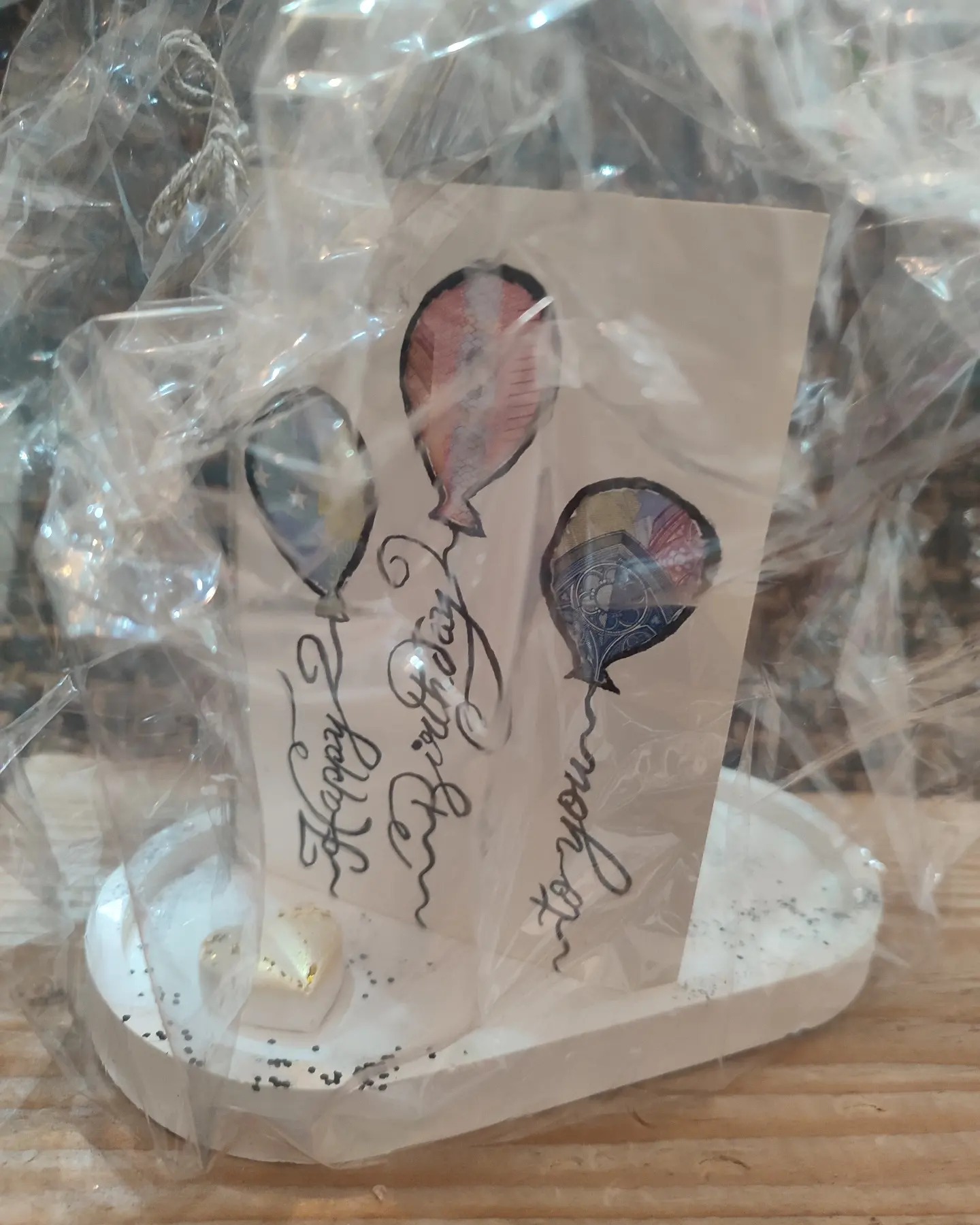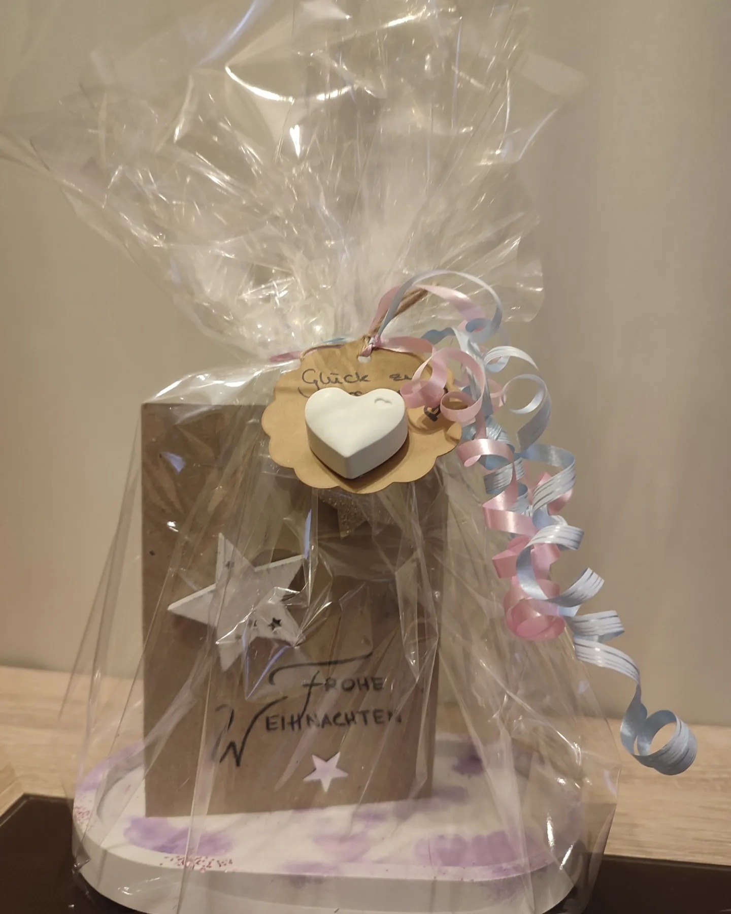 - auf Holzbrettchen / Schale mit passender Deko, Spruch, Name, Daten… Preis je nach Aufwand