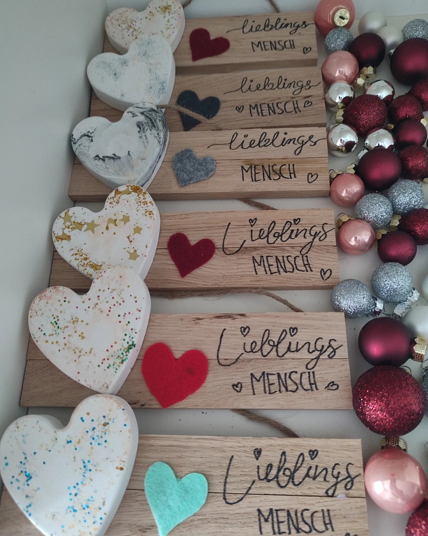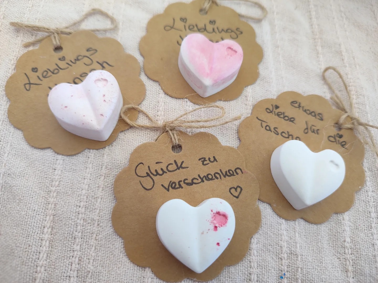 Kleine Schilder mit Herz & Beschriftung nach Wunsch.