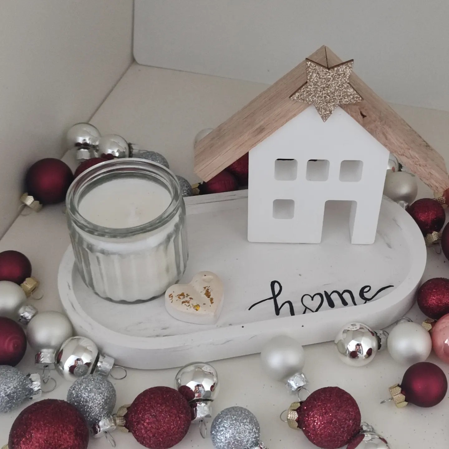 aber auch alleine, auf einem Holzbrettchen oder Schale wirkt dieses Herz einfach.
