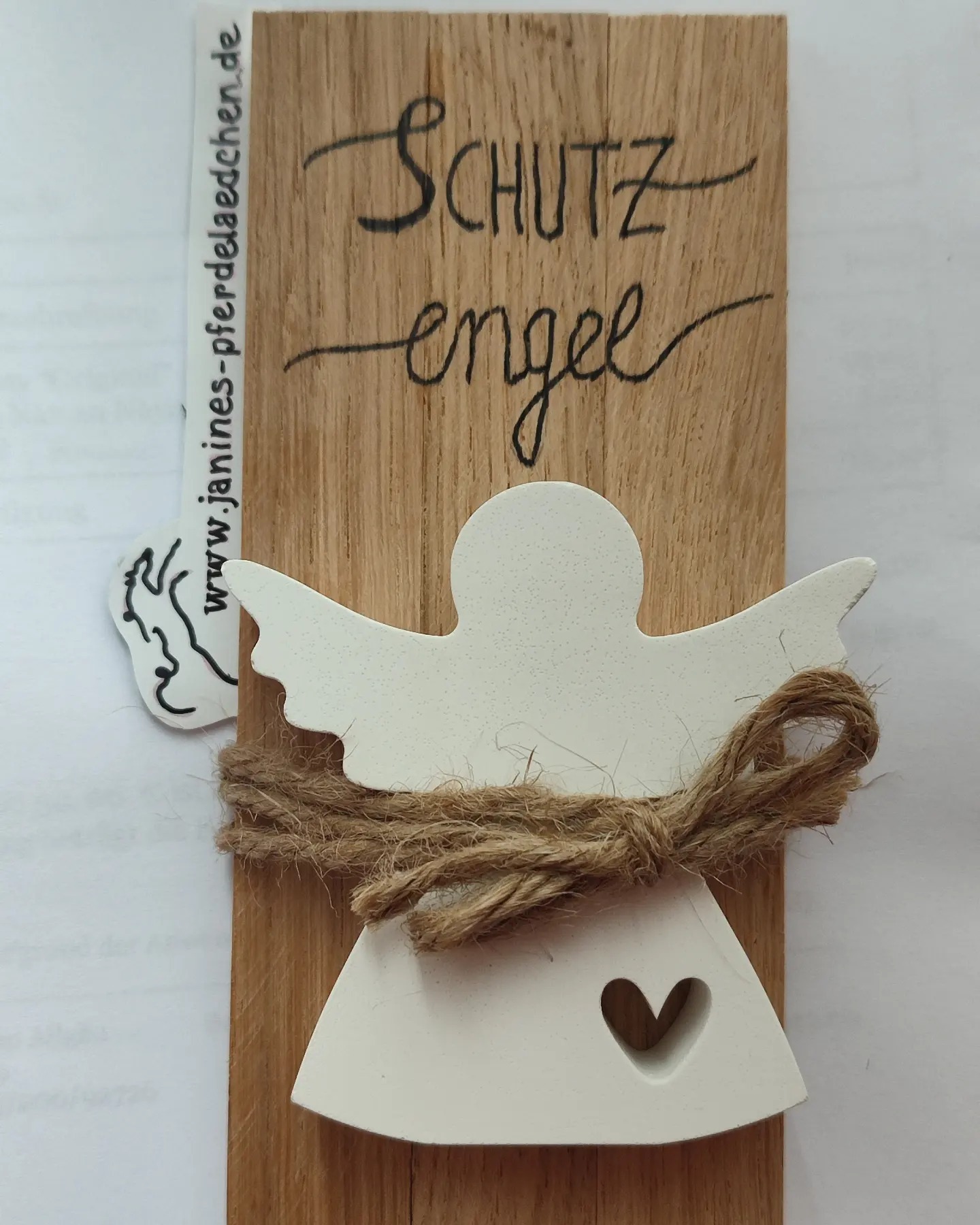 - Schutzengel auf Holzbrettchen gebunden oder geklebt, beschriftet 12€